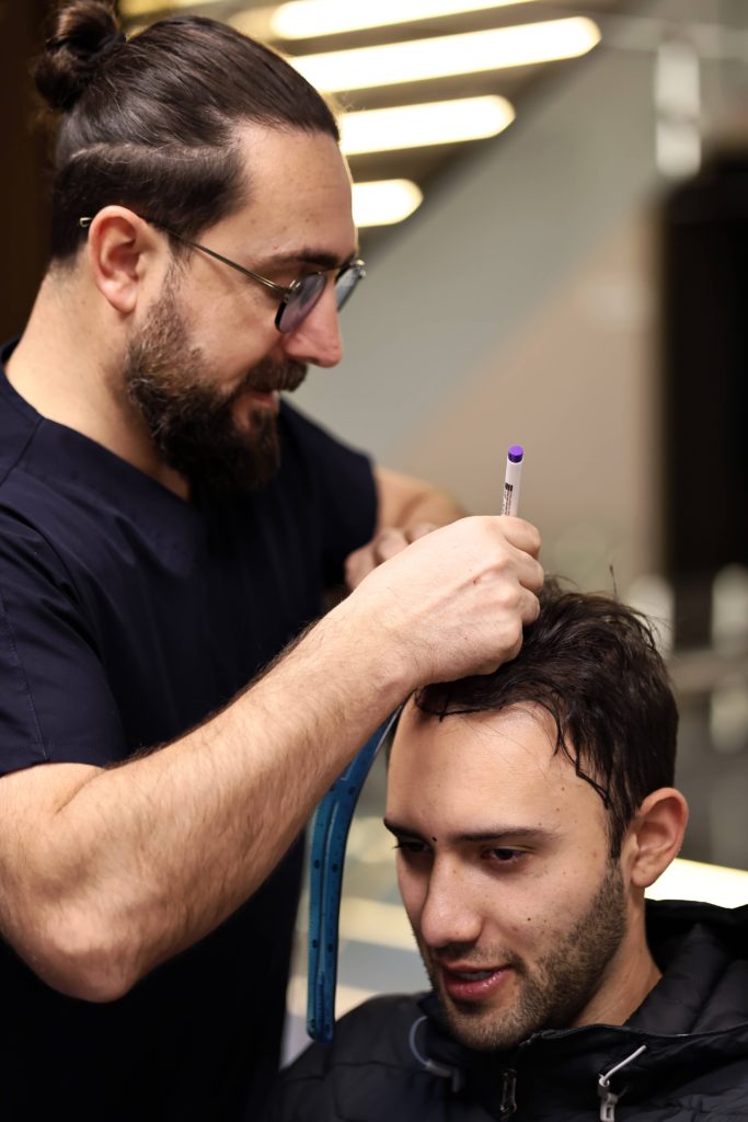 During local anesthesia, both the donor and recipient areas are injected multiple times with very fine needles. Therefore, a hair transplant in Turkey at our clinic is performed completely pain-free, which also helps to further reduce patient stress.